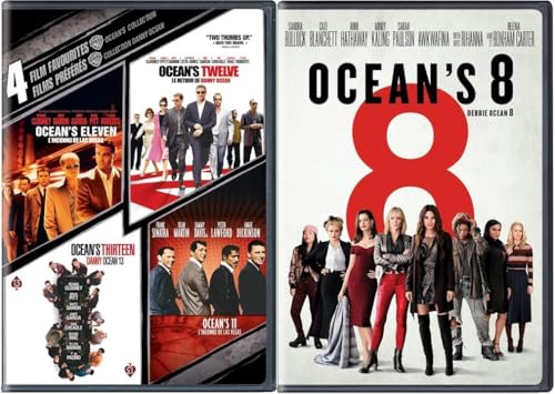 This complete release order includes the standalone 1960 original, the connected Soderbergh trilogy (2001-2007) that follows Danny Ocean and his expanding crew through a series of elaborate heists, and the 2018 spin-off Ocean's Eight featuring an all-female crew led by Danny's sister Debbie Ocean, set in the same universe as the modern trilogy.